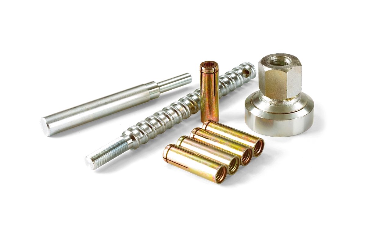 Стандартный набор анкеровки включает большую барашковую гайку, толстую шайбу, резьбовую шпильку, кернер и различные анкеры. Анкеры следует выбирать в соотвтствии со структурой материала, который предстоит бурить.