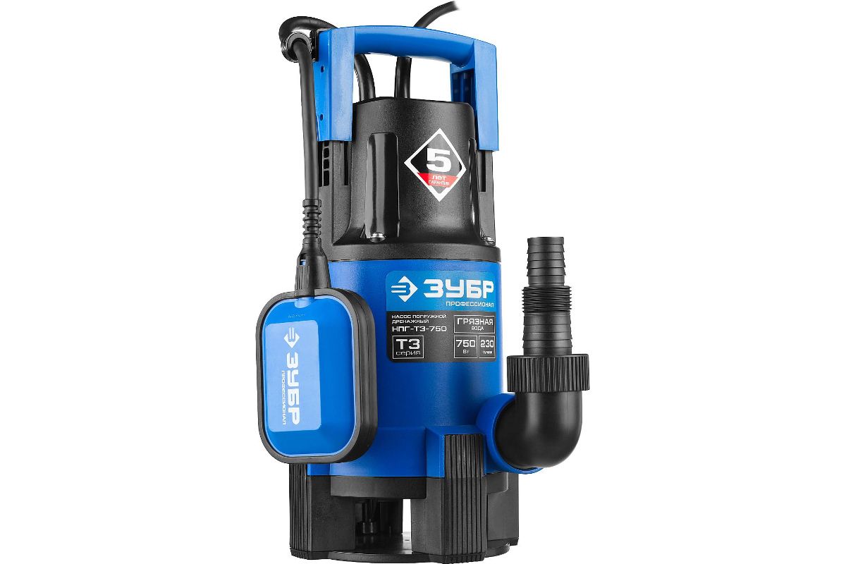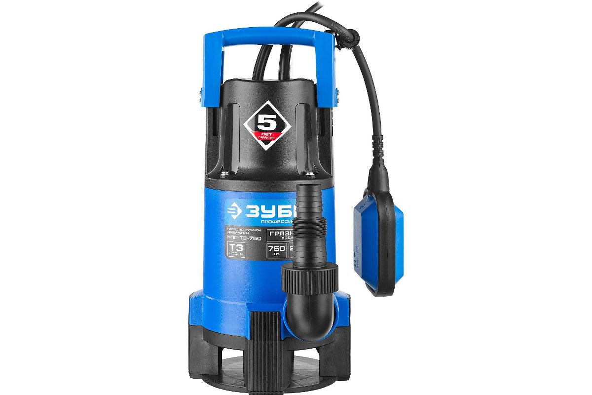 Насос погружной дренажный для грязной воды ЗУБР ПРОФЕССИОНАЛ НПГ-Т3-750 предназначен для автоматического перекачивания воды из емкостей и водоемов, организации забора воды с колодцев, скважин и подачи на высоту до 8 метров.
