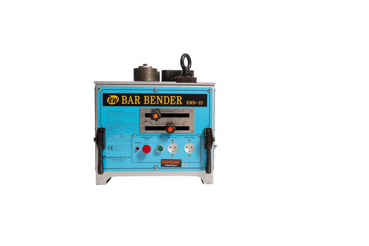 Процесс гнутья арматуры происходит вокруг центрального валка при перемещении гибочного валка по внешней поверхности арматуры, опирающейся на упорный штырь. Станок для изгиба арматуры Kunwoo KMB-25 используется на заготовительных участках заводов ЖБИ, домостроительных комбинатах, строительных объектах, в ремонтно-коммунальных службах. Система автоматики станка состоит из высококачественных комплектующих и имеет ряд защитных электрических устройств.